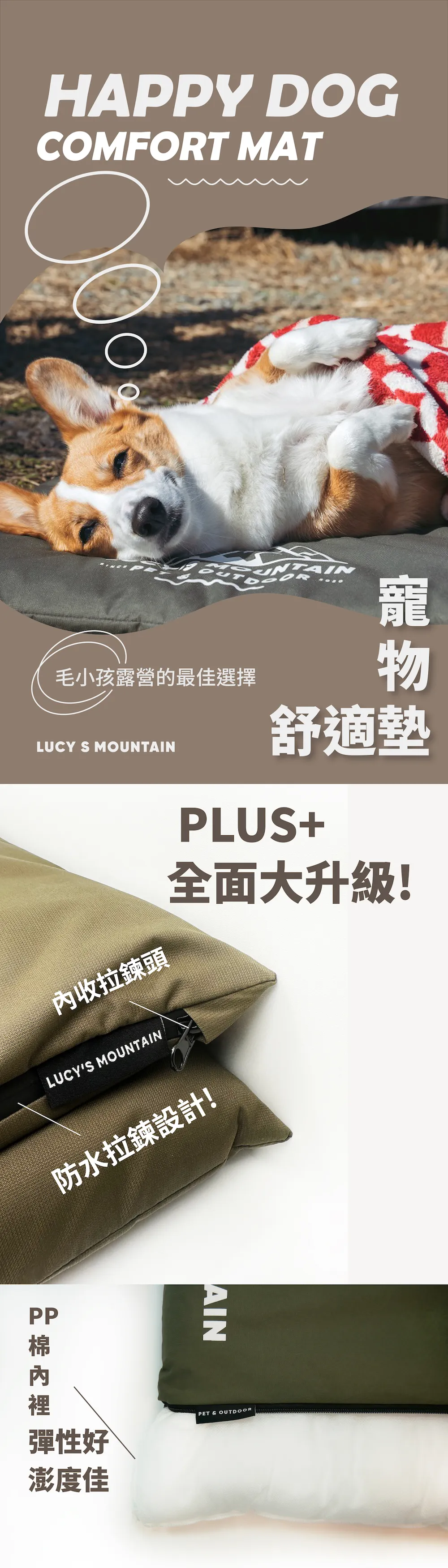 CAMPAHOLIC 的選物哲學,是關注夥伴的「安全感」,同時在乎主人的「效率」。LUCY'S MOUNTAIN Comfort Mat PLUS+ 完美平衡了這兩端。